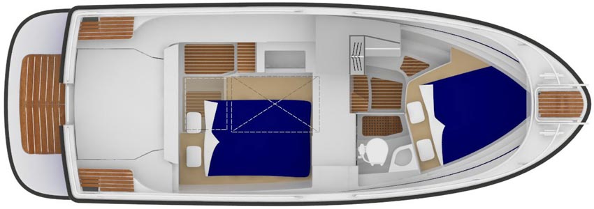 Sargo 28 hevur tvær kabinur, hetta ger bátin væl egnaðan til familju túrar. Afturdekki er so rummeligt at øll kunnu samlast har meðan báturin er í havn. Køkurin gevur møguleika fyri at gera nær um allan mat umborð.